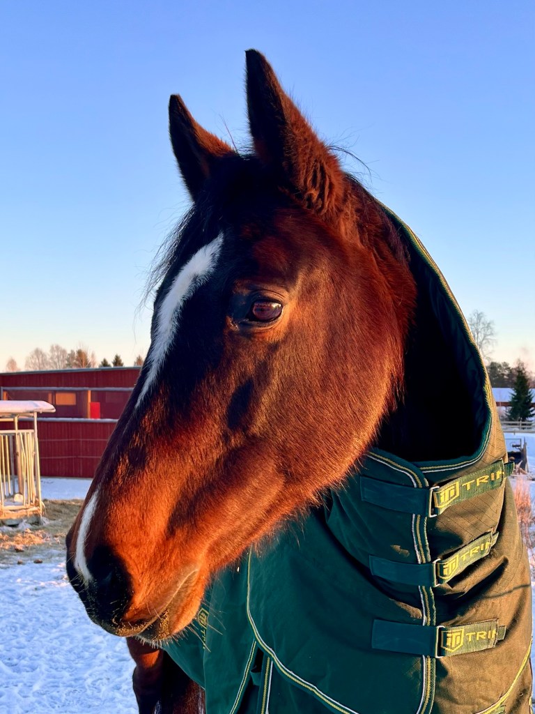 Bild från nyårsafton 2025. Hästarna hade det lugnt och mysigt i stallet, och slapp höra eller se några fyrverkerier.
