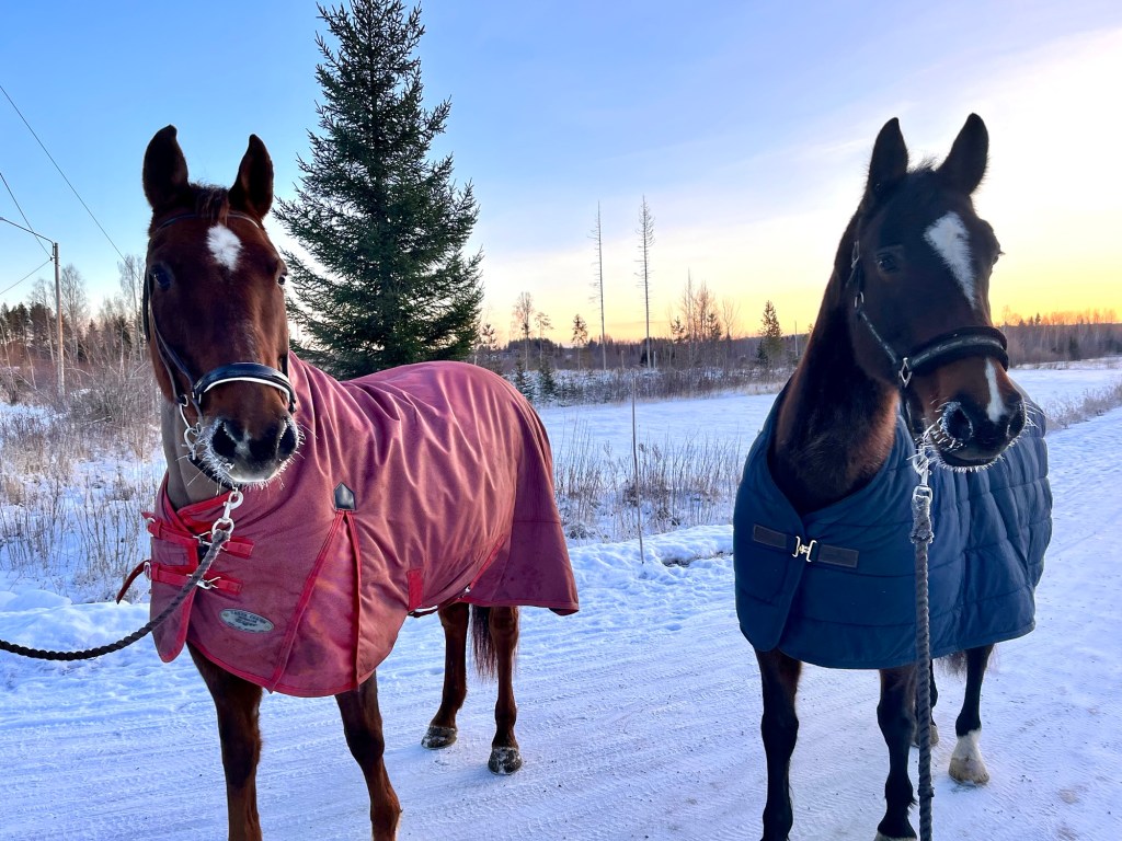 När man vill att hästen rör på sig i 22 minusgrader krävs det viss övertalning (och varma kläder)!