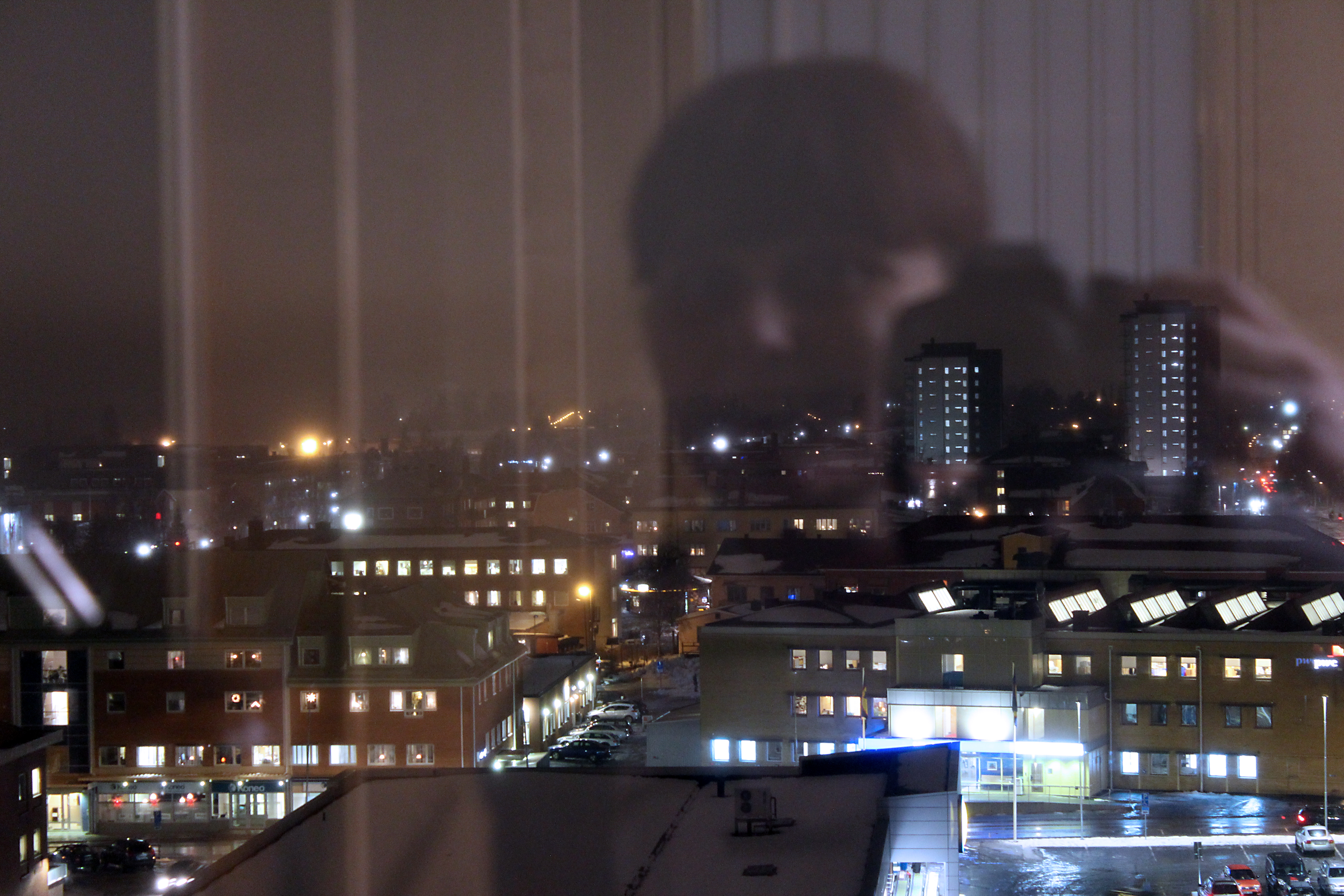 Oj så misslyckat – Skulle ta lite fina mörkerbilder men fick inte bort störande bakgrundsljus från korridoren utanför. Hopplöst när ljuset styrs av rörelsesensorer. Men bilden blev användbar ändå!