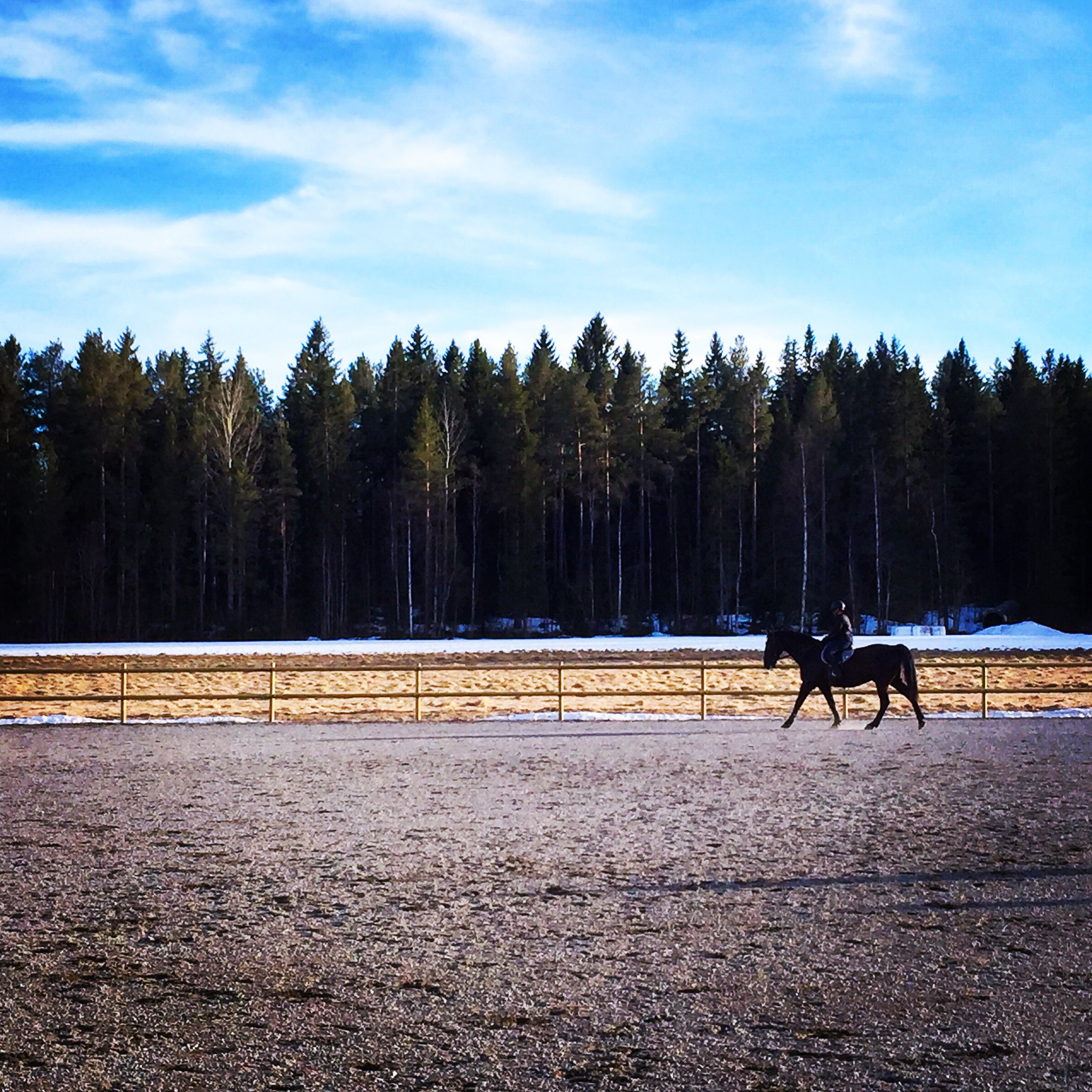 Inte mer än så behövs för en bra kväll. En häst, en ridbana och en blå himmel.